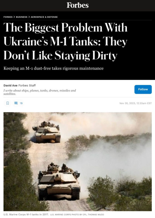 Пыль и грязь выведут из строя немногочисленные украинские Abrams столь же быстро и уверенно, как российские мины и ракеты. А тщательное техническое обслуживание и капремонт украинских М-1 производятся в Польше», – говорится в статье.