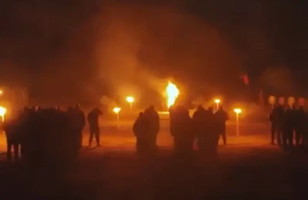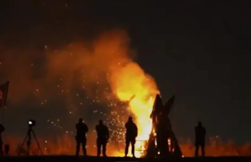 Украинское формирование "Азов" (террористическая организация, запрещенная на территории РФ) опубликовало кадры, на которых запечатлен своеобразный ритуал, в ходе которого украинские нацисты жгут языческие костры, стреляют в воздух из автоматов и грозятся жестоко отомстить за своих боевиков, ликвидированных российской армией.
