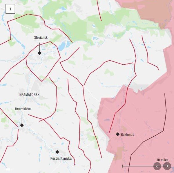По данным издания, основные работы идут вокруг Лимана, под Авдеевкой и у Купянска, с главной линией, примерно, в 16 километрах западнее Авдеевки.