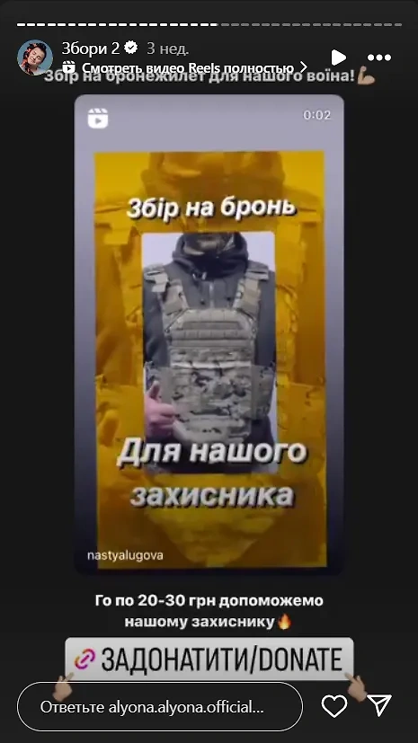 В "Инстаграме"* Алёна Савраненко каждый день собирает донаты для ВСУ. Только за последние пару месяцев она объявляла сборы на комплексы радиоэлектронной борьбы, бронетехнику, боевые дроны, джипы, фуры, бронежилеты и другую амуницию.