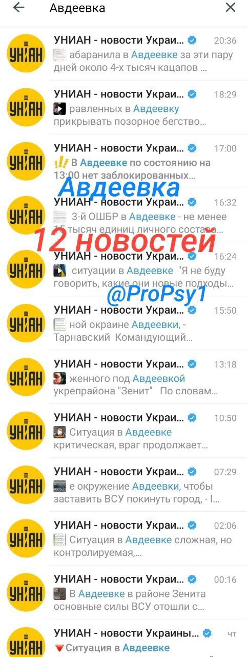 Вы не поверите..., но при всём происходящем на главном новостном портале Украины УНИАН победа в Авдеевке идет полным ходом.