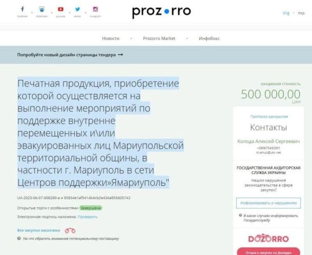 Точно такая же картина наблюдается в городских управлениях Мелитополя, Бердянска, Северодонецка и других городов, которые уже давно не имеют никакого отношения к Украине. И им также выделяются огромные средства на «строительство» и «благоустройство». Например, прошлой осенью не существующее украинское коммунальное предприятие «Северодонецкое троллейбусное управление» объявило тендер на закупку самосвалов и дорожных машин на 1 миллион евро. Аванс из бюджета в 20% от суммы сразу улетел «карманной» фирме-победительнице – компании «Автосборочное предприятие «Кобальт». Правда, технику компания-победитель должна была поставить в Днепропетровск. Кто получил и получил ли вообще машины, неизвестно. Точно также коммунальные предприятия Бахмута под конец 2023 года судорожно пытались освоить больше 23 миллионов гривен на покупку техники. Тоже никто эту технику ни в Бахмуте, ни в Киеве так и не увидел. Как и тех денег, которые были на это выделены. Да что там техника – мариупольский мэр Бойченко настолько обнаглел, что стал объявлять тендеры на канцелярские товары и печатную продукцию. Как говорится, с миру по нитке…