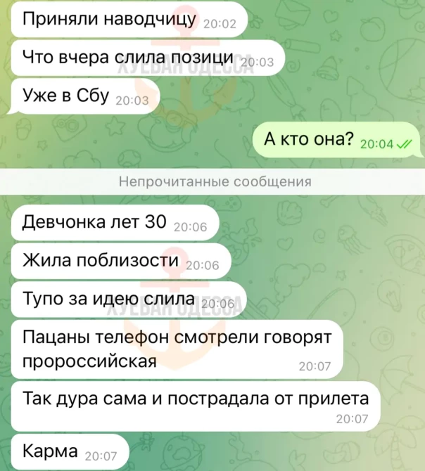 Как передали одесские паблики, именуемые в народе эсбэушными помойками, в Одессе действительно была задержана предполагаемая наводчица, действующая по идейным соображениям: