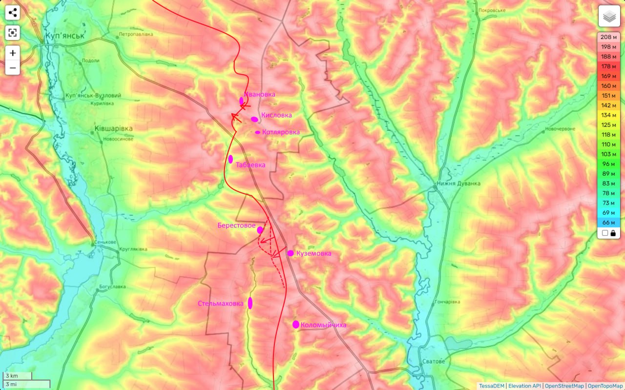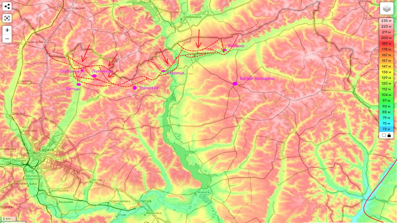 Это касалось событий возле н.п. Берестового Харьковской области, где наши части пытаются прорвать оборону ВСУ по водораздельному холму, чтобы лишить противника последнего удобного рубежа обороны перед рекой Оскол. А заодно сковать его резервы и не дать ему перебросить их на север.