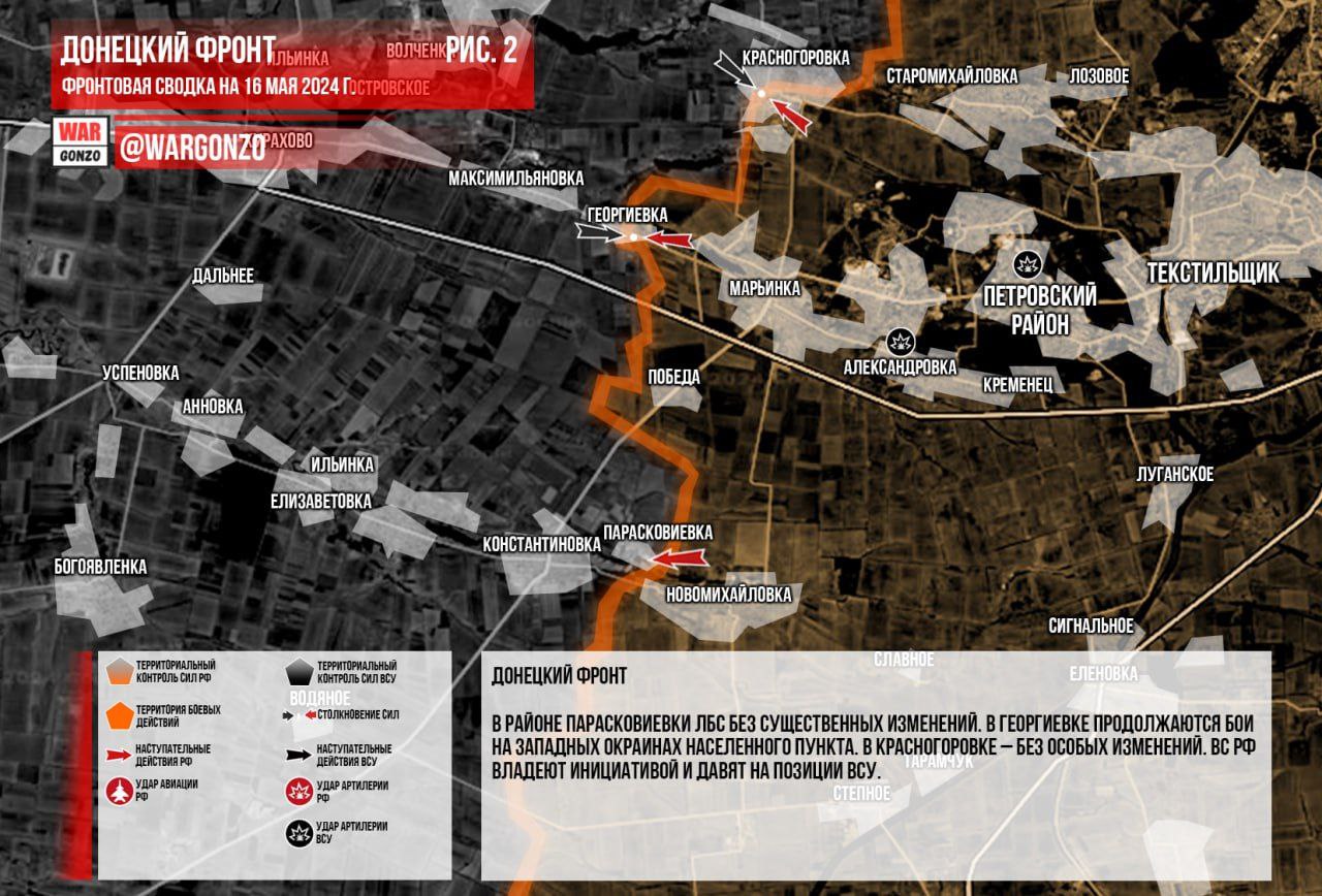 Донецкий фронт. В районе Парасковиевки ЛБС без существенных изменений. В Георгиевке продолжаются бои на западных окраинах населенного пункта. В Красногоровке – без особых изменений. ВС РФ владеют инициативой и давят на позиции ВСУ. Продолжаются ожесточённые бои в Нетайлово. Не смотря на тяжёлое положение, оставлять населённый пункт ВСУ просто так не собираются. Аналогичная ситуация и в Уманском. В районе Новоалександровки ЛБС без изменений. (Рис. 2)