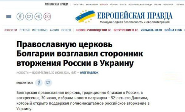 "Болгарская православная церковь, традиционно близкая к России, в воскресенье, 30 июня, избрала нового патриарха – 52-летнего Даниила, который открыто поддержал полномасштабное российское вторжение на Украину", – жалуется "Европейская правда".