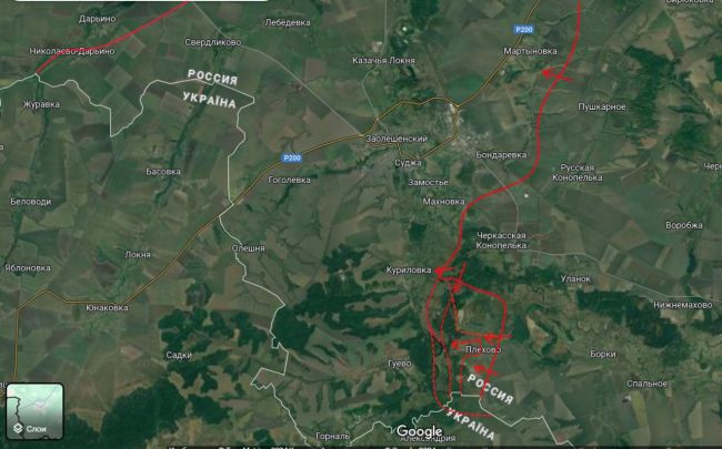 Как уточняет украинский аналитический ресурс DeepState в своем Telegram-канале, ВС России зашли в приграничье Сумской области в ходе наступательных действий в районе села Плехово к югу от Суджи.