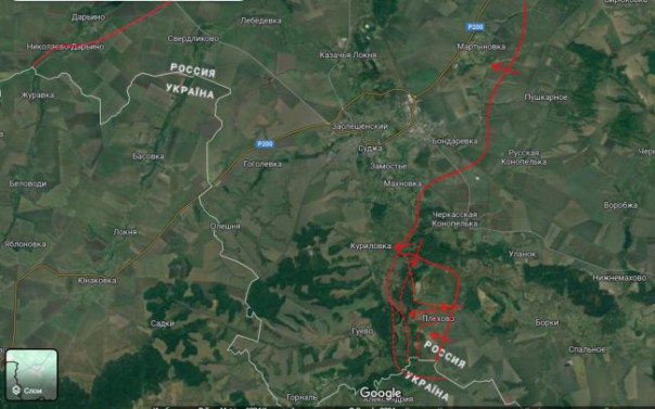 Из украинских источников поступает информация о том, что российские войска продвинулись в приграничном районе Сумской области Украины к югу от Суджи в Курской области РФ.