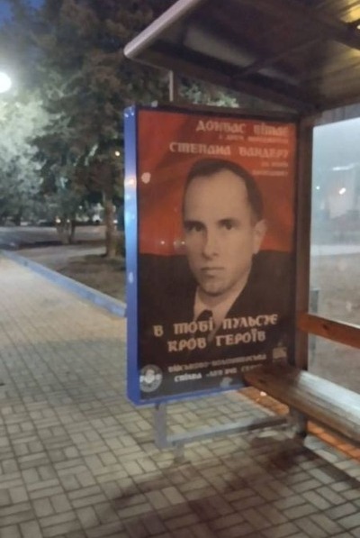 «Донбасс поздравляет с днем рождения Степана Бандеру. 116 лет проводнику. В тебе пульсирует кровь героев», − гласит надпись на черно-красном плакате рядом с изображением лидера националистов.