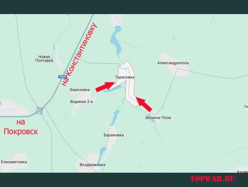 Освобождение части Тарасовки к востоку от Покровска произошло после взятия под контроль нашими бойцами нескольких соседних сёл: Зелёного Поля, Водяного Второго и Берёзовки. Они, как и Тарасовка, расположены южнее автомобильной дороги Покровск-Константиновка. Успех ВС РФ в Тарасовке позволяет не только расширить зону контроля у этой дороги, но и ближе продвинуться на Константиновском направлении.