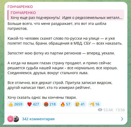 Петух Гончаренко возмущается, что Вова 4% теперь просто отдаст американцам все стратегические активы на территории страны 404