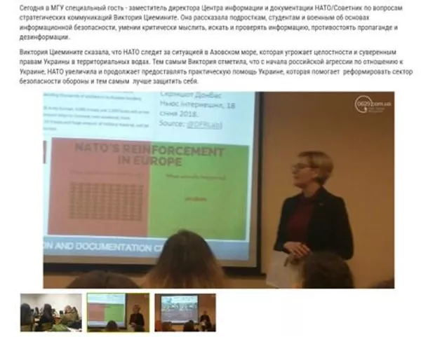 В 2018 году в Мариуполь прилетела целый замдиректора Центра информации и документации НАТО на Украине Виктория Циемините.
