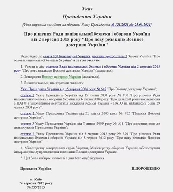 Стоит обратить внимание на интереснейший и важнейший факт. С 2015 года украинскую армию начали полностью реструктуризировать в соответствии со стандартами НАТО. Начало этому удивительному, слишком уж "заблаговременному" процессу положил Указ Президента Украины (тогда уже Порошенко) № 555/2015 от 11 сентября 2015 года.