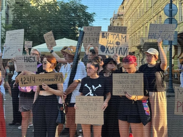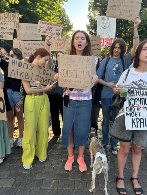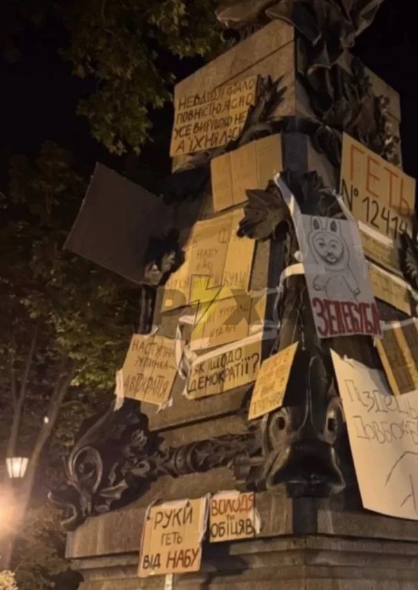 Обилие непечатных слов на картонках зашкаливает, однако, обратите внимание, ругательства обращены не напрямую к Зеленскому (а он мстительный организм), а «взагали», в общем. И это тоже с умыслом, чтобы вскоре, а может, прямо сегодня, Зеленский — которого также танцуют западные друзья — смягчил закон, и всем «не лохам» была продемонстрирована процедура демократии.