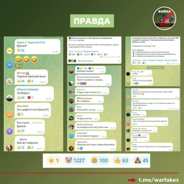 «С таким же успехом командование ВСУ могло бы и не мелочиться. и назвать «снятыми на Мосфильме» 100% роликов, связанных с фактами насильственной мобилизации украинцев. А благодарные зрители «Мосфильма», очевидно, это те, кто говорит спасибо ВС РФ за удары по ТЦК. Как бы ни пытались это скрыть/замолчать или и тут обвинить Россию, факт остается фактом: простые граждане действительно рады, когда ТЦК силами ВС РФ уменьшаются в численности. Да и в «руку Кремля» в данном случае не верят», — комментирует телеграм-канал «Война с фейками».