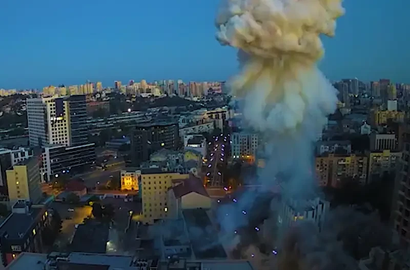 В Киеве засняли момент прилета ракеты по расположению инструкторов НАТО