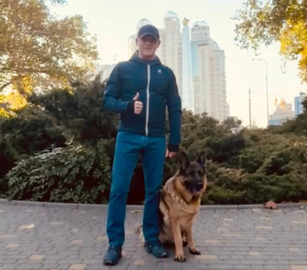 А сам Труханов гулял в это время с собакой в центре города без очевидной охраны. И специально сфотографировался на фоне звезды стелы «Крылья Победы», которую не снес и до которой не добрался Ганул (неделей раньше было слабо?).
