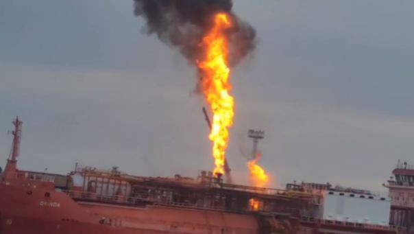 Под Одессой после прилёта "Гераней" горит газовоз, есть угроза большого взрыва