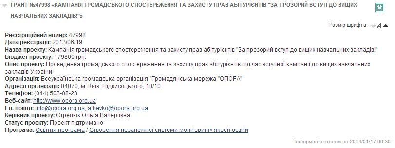 Идём дальше. Ого! “Фонд “Демократичні ініціативи” ім. Ілька Кучеріва”. Это же социологическая контора Ирины Бекешкиной, “последнего независимого социолога”! Как же, она же должна быть нейтральной! Ага, щас. Три гранта. Самый интересный — под названием ”Как убедить жителей Востока и Юга в пользе европейской интеграции: экспертное мнение и зарубежный опыт“. Нужны комментарии? Нет. Просто оставим это как факт. Социолог Ирина Бекешкина в октябре 2013 года получила от фонда Сороса 151 тысячу гривен на проект “Как убедить жителей Востока и Юга в пользе европейской интеграции”, а в январе 2014 года подписалась против законопроекта, который заставит её в будущем открыто сообщать общественности о подобном. В этой фразе есть хоть слово неправды? Или, может быть, какая-то манипуляция или передёргивание фактов?