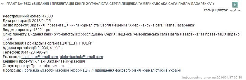 Вот, известные независимые журналисты Сергей Лещенко и Вахтанг Кипиани, например. “Видання і презентація книги журналіста Сергія Лещенка “Американська сага Павла Лазаренка“, 48 221 грн.