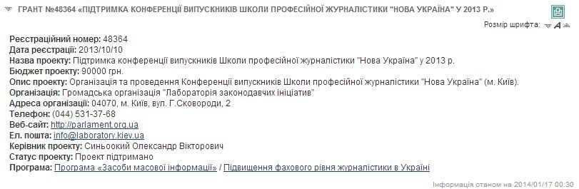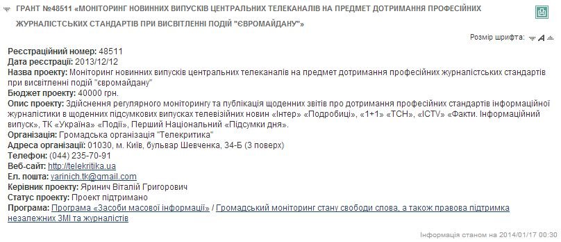 Фундація “Відкрите суспільство”? За 2013 год — три гранта от Сороса. “Об’єднання “Центр політичних студій та аналітики”? За 2013 год — три гранта от Сороса.