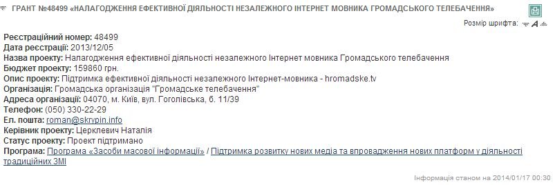 Июль 2013 года. 88 тысяч гривен от Сороса на запуск вещания.
