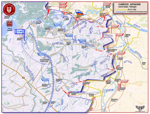Здесь на широком фронте подготовлены несколько плацдармов для решения тактических и оперативных задач по рассечению Северского выступа в междуречье Северский Донец - Сухая и ликвидации опорных пунктов противника в предполье левого фланга основного укрепленного района ВСУ Славянск – Краматорск - Константиновка.