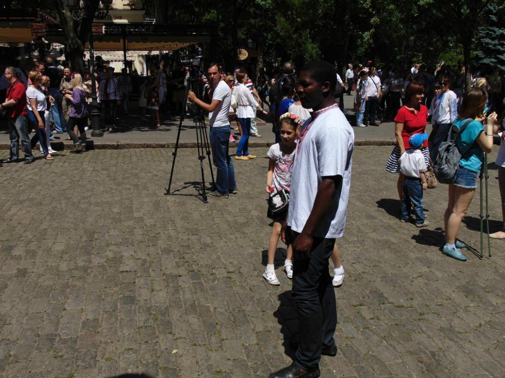 Скажу сразу - никаких "тысяч одесситов" на сегодняшний марш не выходили. Так что утверждение, что тысячи людей вышли на Марш вышиванок в Одессе, мягко говоря, не соответствует действительности. Даже более реалистично оценивший численность мероприятия Первый городской канал слегка завысил число скакунов. Голов 500-600 их было максимум, не больше. Вот тут вот есть весь марш от начала и до конца: