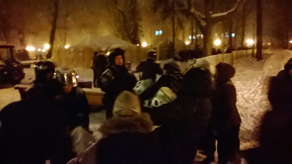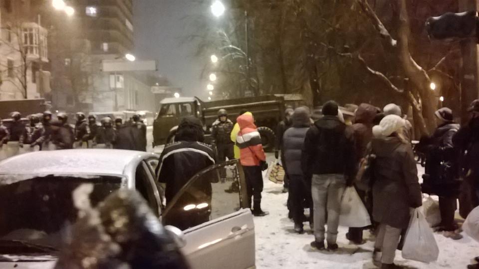 21 января вечером около 30 киевлян навестили боевые позиции блокпосты ВВ и «Беркута» в правительственном районе города