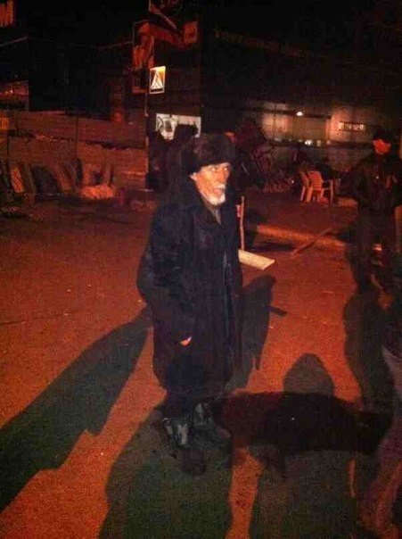 И тут я вижу человека с фотографии (прошу прощения за качество, было не до настроек) - рядом со мной в первых рядах на баррикадах стоит дед-ветеран, с лентой георгиевской на груди (сразу прошу прощения - в горячке не запомнил его имени), человеку больше восьмидесяти лет, он сам из Попасного, приехал в Луганск, у него в одной руке обрубок дерева (тяжелый довольно таки). а в другой - тетрадный листик с номером телефона дочки и адресом - "Если убьют. чтоб сообщили" (С) Дед, говорю, зачем ты приехал, тут есть кому стоять, мы молодые справимся, тебя ж просто толкнут и все, умрешь! - от ответа до сих пор слезы на глаза наворачиваются - "Я в молодости этих фашистов не боялся. а теперь мне вообще терять нечего... Дочке только позвоните. если убьют..." - Вот это ГЕРОЙ, всякие небесные сотни и рядом не стояли с одним стариком, который второй раз за свою жизнь вышел своих соотечественников защищать!!!
