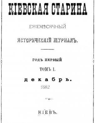 «Киевская старина» - исторический журнал, выходил ежемесячно в Киеве в 1882 – 1906 гг. на русском языке.