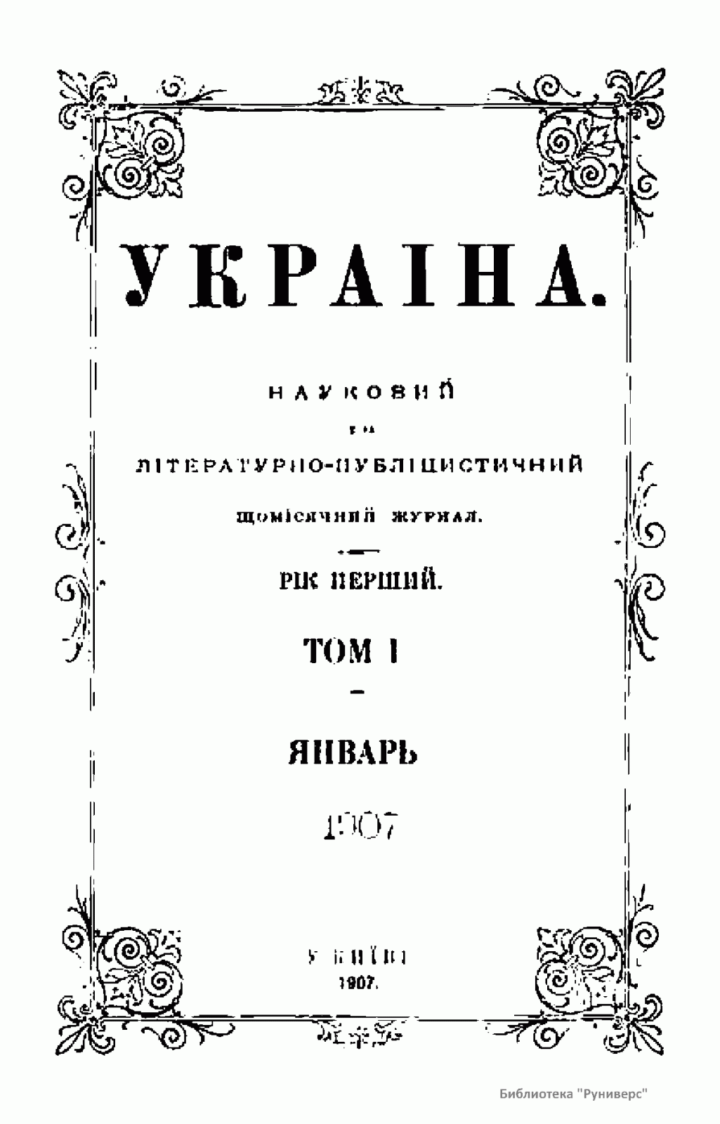 В конце 1905 г. В. Науменко решает вместо «Киевской старины» с января 1907 г. издавать журнал «Украина» на украинском языке (исключение делалось для авторов, еще не вполне им овладевшим). Сообщалось также, что с 1907 г. редакция «Украины» будет издавать «Словарь украинского языка», составленный редакцией «Киевской старины». Редактором словаря, стал Б. Д. Гринченко (1863-1910 гг.). Закончить издание четырехтомного словаря объемом в 150 печатных листов планировалось в том же 1907 г.