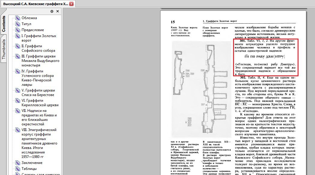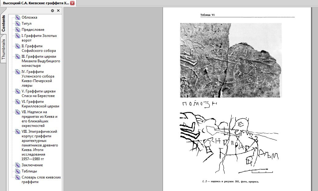 Я, как темный и недоверчивый москаль, решил проверить это величайшее открытие Писаренко. Я скачал книгу «Высоцкий С.А. Киевские граффити XI-XVII вв. Киев: Наукова думка, 1985.» http://www.ex.ua/82128966 и сравнил эти рисунки.