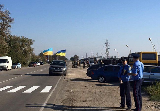 Правый сектор обустраивает позиции для блокирования груза с продовольствием для Крыма в Херсонской области, сообщает телеканал "112 Украина".