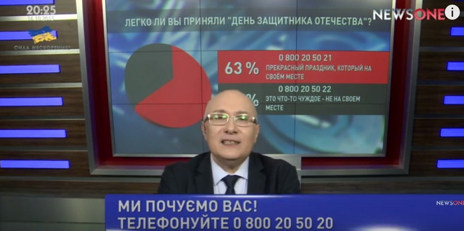 Все звонившие в студию хвалили Петра Порошенко за новый праздник, график опроса рисовал 63% поддержки новой даты.
