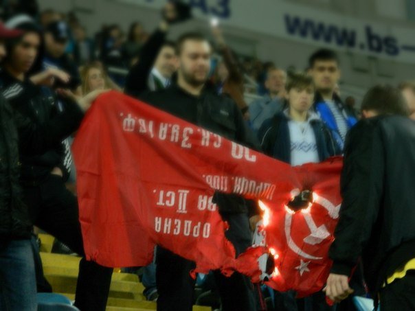 На фашиковском сайте опубликовано это фото.И написано "СПб нас поддерживает!"(Подразумевается,что если написано "Украина",то имеются ввиду эта шароварная гопота) и восхищённые ответы "Ну это же Питер!"