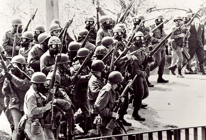 Национальная гвардия ведет бой в Кентском университете. ФОТО AWESOMESTORIES.COM