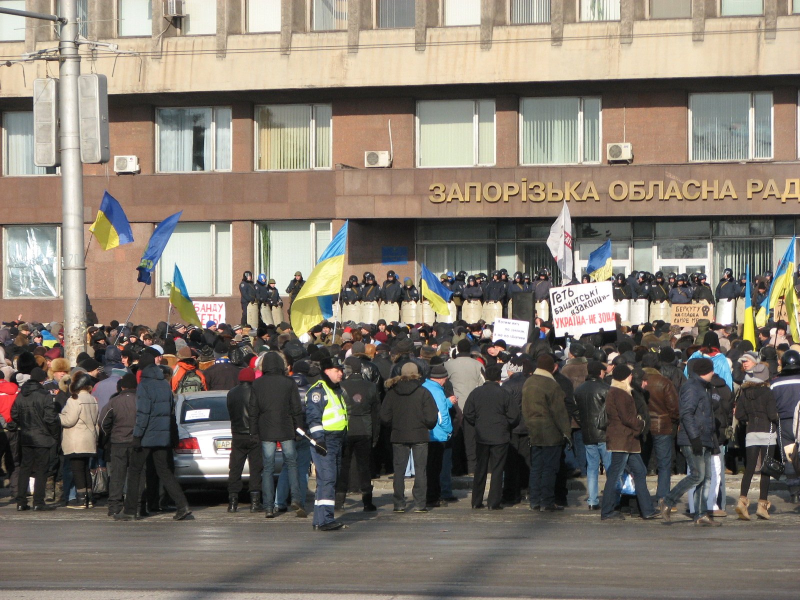 Пришёл с площади перед Запорожской облгосадминистрацией и тут же читаю информацию со ссылкой на УНИАН: «Около 14.00 по местному времени (16.00 мск) активисты в Запорожье начали штурм местной областной государственной администрации. На площади перед зданием собрались около 10 тысяч человек. Активисты кидают в милиционеров камни, а силовики отвечают светошумовыми и газовыми гранатами». Особенно позабавило цифра – 10 тысяч человек. Шуллеры! Но это майдауная пропаганда, я же расскажу как всё было.