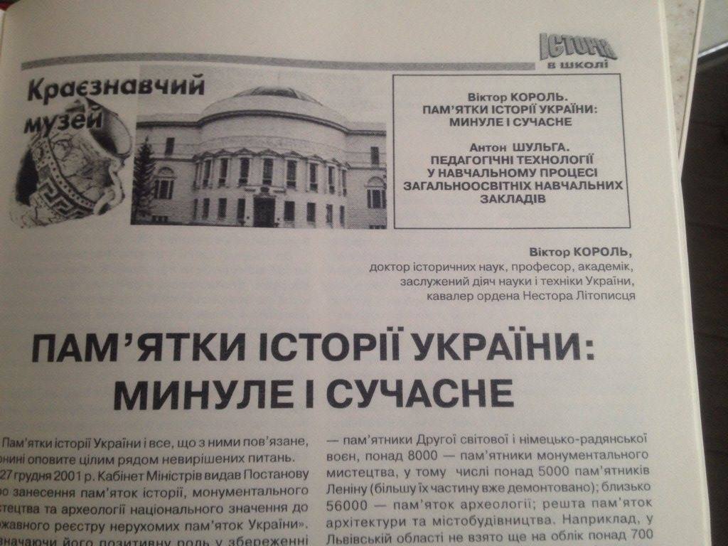 В киевском научно-методическом журнале для учителей «История в школах», который выдает Национальный педагогический университет им. Драгоманова, профессор истории назвал президента Украины Петра Порошенко «Вальцманом» и «барыгой», а украинскую власть — сионистской.