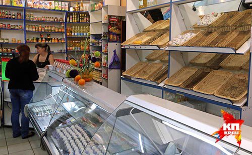 В крупных торговых сетях, их несколько в городе, ассортимент почти не изменился. Возможно, сидящие в Киеве хозяева смогли как-то договориться с новой властью о подвозе товара. Не случайно нас встречают в этих магазинах очень недружелюбно, требуют прекратить съемку. Объективно, ситуация даже близко не напоминает критическую, но что будет дальше – догадаться несложно. Народный мэр, в неофициальном разговоре, так прокомментировал слухи о голоде:
