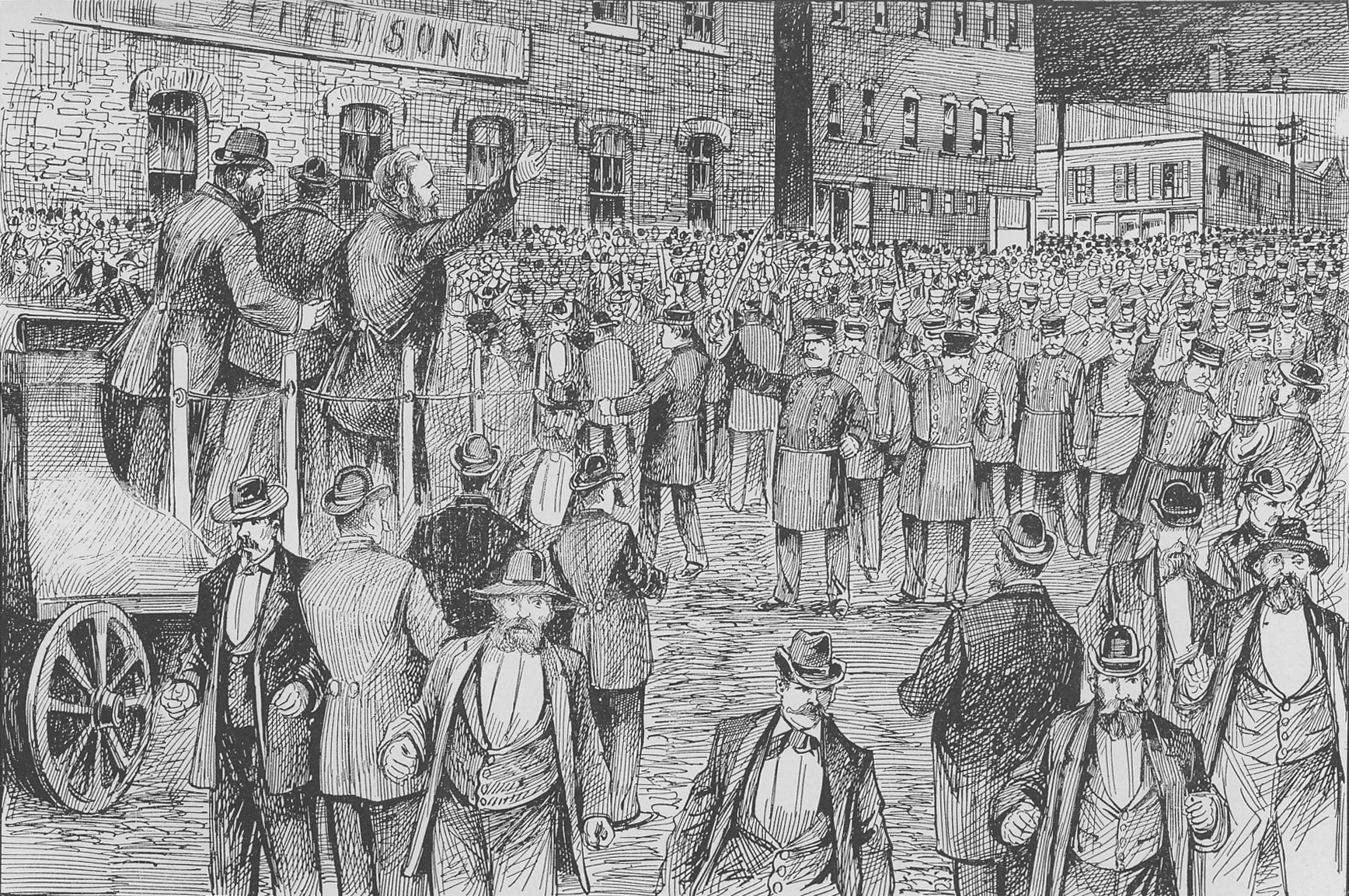 Кризис 1873 года обострил классовую борьбу. Улицы городов наполнились безработными, предприятия закрывались, оставшимся снижали заработную плату. Попытки рабочих создавать комитеты безработных пресекались властями, для подавления недовольства использовалась полиция и сотрудники частных охранных агентств. В 1877 году состоялась массовая забастовка железнодорожников, вызванная снижением заработной платы по всем линиям к востоку от Миссури, в которой приняло участие более 100 000 человек. Железнодорожников поддержали горняки и рабочих других специальностей. Забастовки перекатывались из одного штата в другой, в нескольких городках рабочие захватывали власть и создавали комитеты безопасности. Для подавления забастовок впервые были призваны войска. В некоторых штатах власти были вынуждены пойти навстречу рабочим.