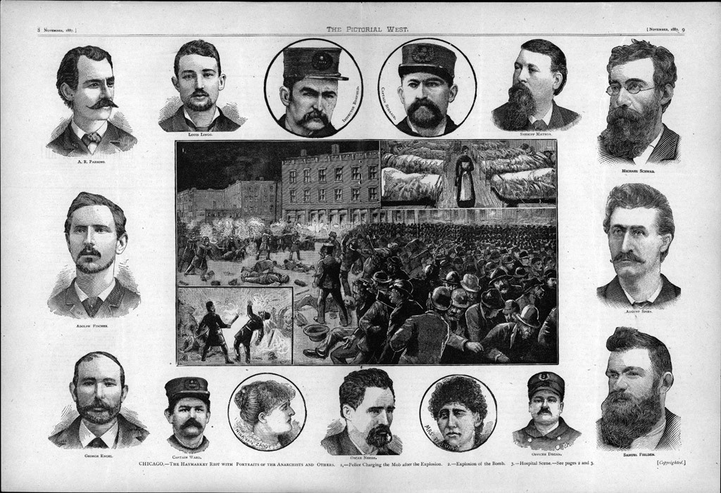 Первого мая забастовало около 40 000 человек. Альберт Парсонс, анархист и основатель Международной Ассоциации Рабочих (International Working People's Association - IWPA) со своей женой Люси и их детьми, возглавлял марш 80 000 человек вниз по Мичиган-авеню. В другом месте города на митинг собралось еще около 10 000 человек. Численность IWPA в Чикаго составляла около шести тысяч человек, они издавали несколько газет для рабочих.