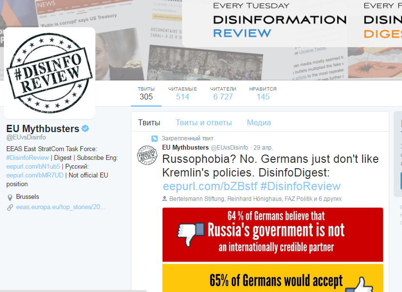 Надо сказать, что на дискуссии 29 апреля, щедро оплаченной американскими и европейскими правительствами и фондами, в контексте обсуждения темы нового антироссийского проекта «Обмен» звучало и еще кое-что интересное – а именно расширения участия НАТО в противодействии «Кремлевской пропаганды». К примеру, выступающий дипломат Йон Кюст привел отличный пример, как Североатлантический альянс может воевать с Россией в интернет-пространстве. У датчанина прошлой осенью с подачи Европейского фонда в поддержку демократии и StratCom (центр Стратегический коммуникаций НАТО) запустился проект Disinfo Review – обзор так называемой дезинформации в российских СМИ и якобы пророссийской прессе ЕС.
