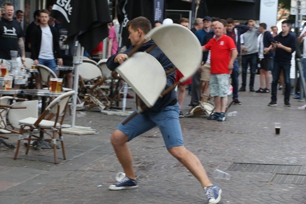 Russische hooligans niet onder de indruk van @EURO2016 dreigement. Rellen in Lille met Engelsen en Wales supp.