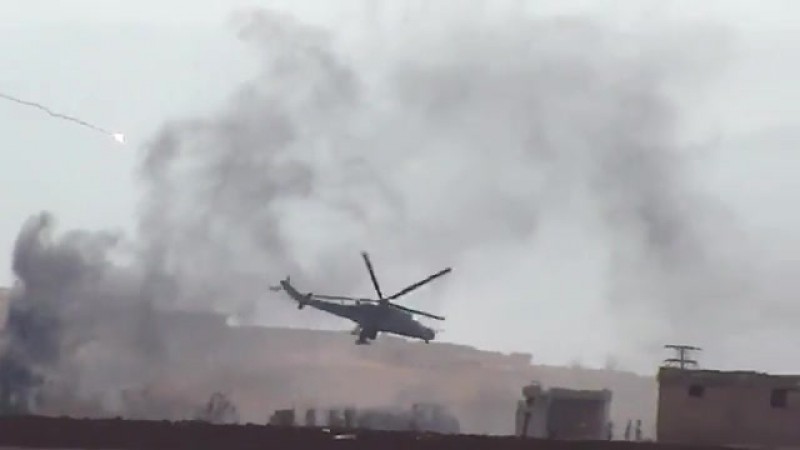 Российские ударные вертолёты Ми-24 (также известный как «Крокодил» за характерный облик) и Ми-8 атаковали позиции «чёрных знамён» к западу от Алеппо.
