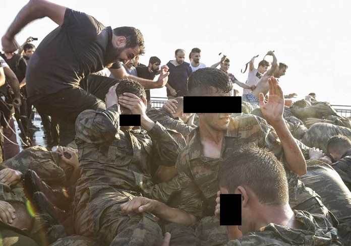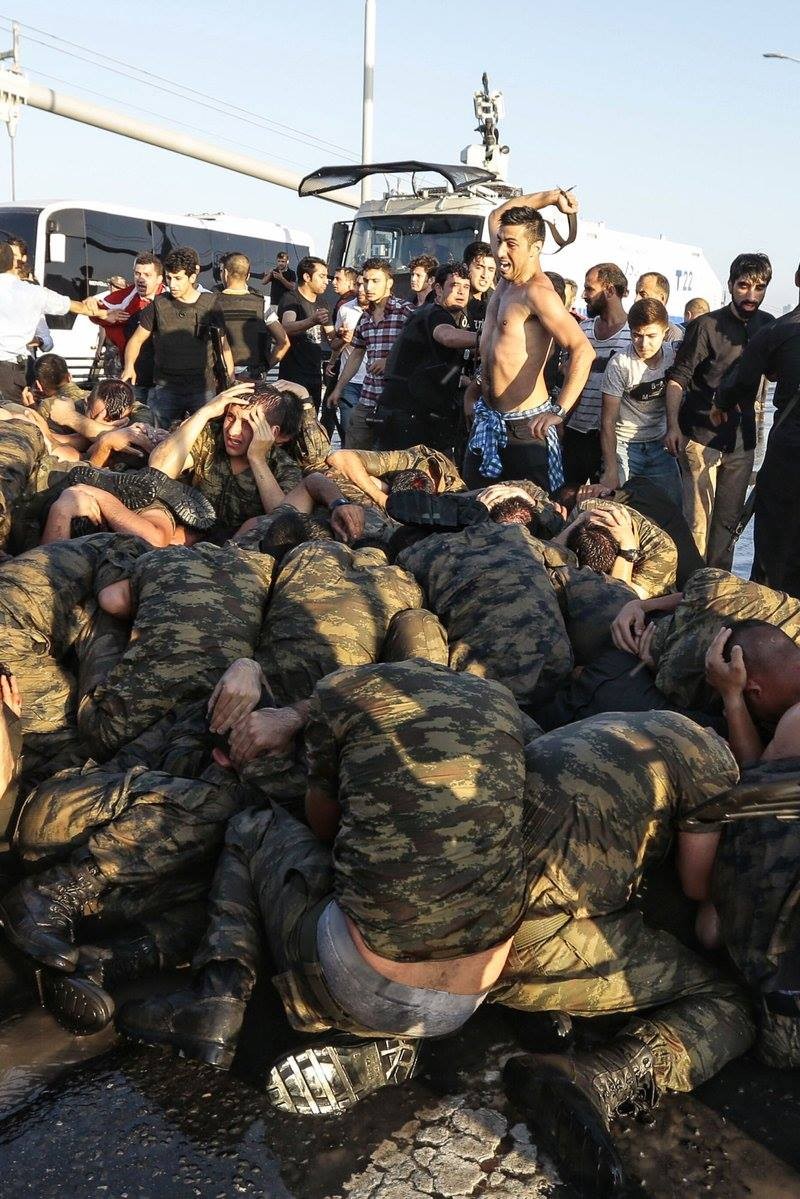 Весь вчерашний день социальные сети и ленты новостей информационных агентств полнились душераздирающими фотографиями из Турции, где сдавшихся солдат избивали, пытали и убивали прямо на улицах. Сообщается, что полиция наблюдала за происходящим безучастно, не вмешиваясь в события. Издевательства и убийства на улицах турецких городов гражданами собственной армии на фото ниже. Такое не каждый день и в редкой стране увидишь.