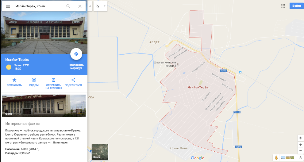 Ранее сообщалось, что сервис Google Maps подчинился решению Киева и "декоммунизировал" названия населенных пунктов в Крыму. В частности, город Красноперекопск на картах Google теперь обозначен как Яны Капу, Красногвардейское стало Курманом, Кировское превратилось в Ислям-Терек, а Советский – в Ички.