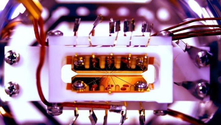 Устройство, созданное под руководством Кристофера Монро (Christopher Monroe), представляет собой набор из пяти связанных друг с другом кубитов на базе ионов иттербия – это редкоземельный металл, один из самых популярных и хорошо изученных материалов для изготовления ячеек памяти и простейших вычислительных модулей подобных устройств.