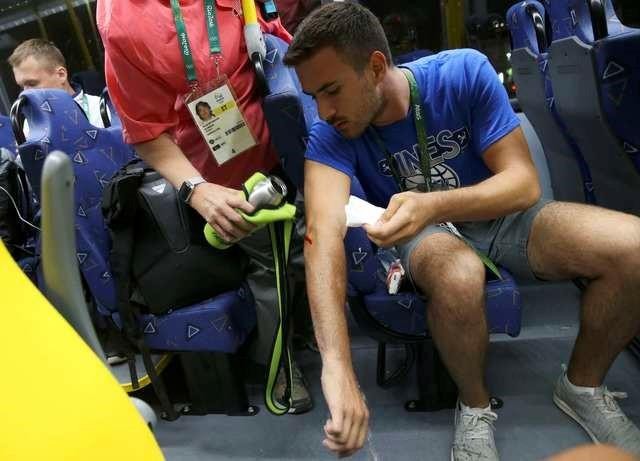 "Мы в курсе произошедшего с автобусом. Два окна были разбиты подручными предметами. Органы безопасности расследуют инцидент, и мы ожидаем их доклада для дальнейших комментариев", — цитирует заявление МОК журналист Press Association Мэтт Слэйтер в своем аккаунте в Twitter.