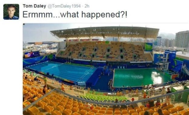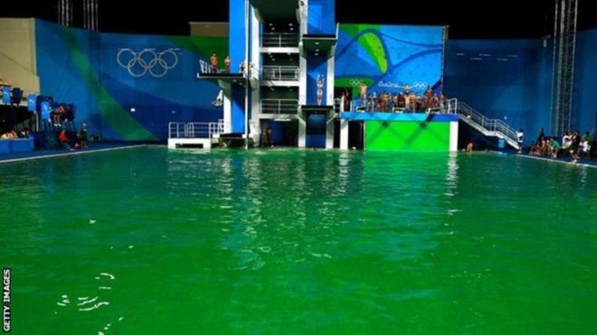 Рио-2016: вода в олимпийском бассейне внезапно позеленела